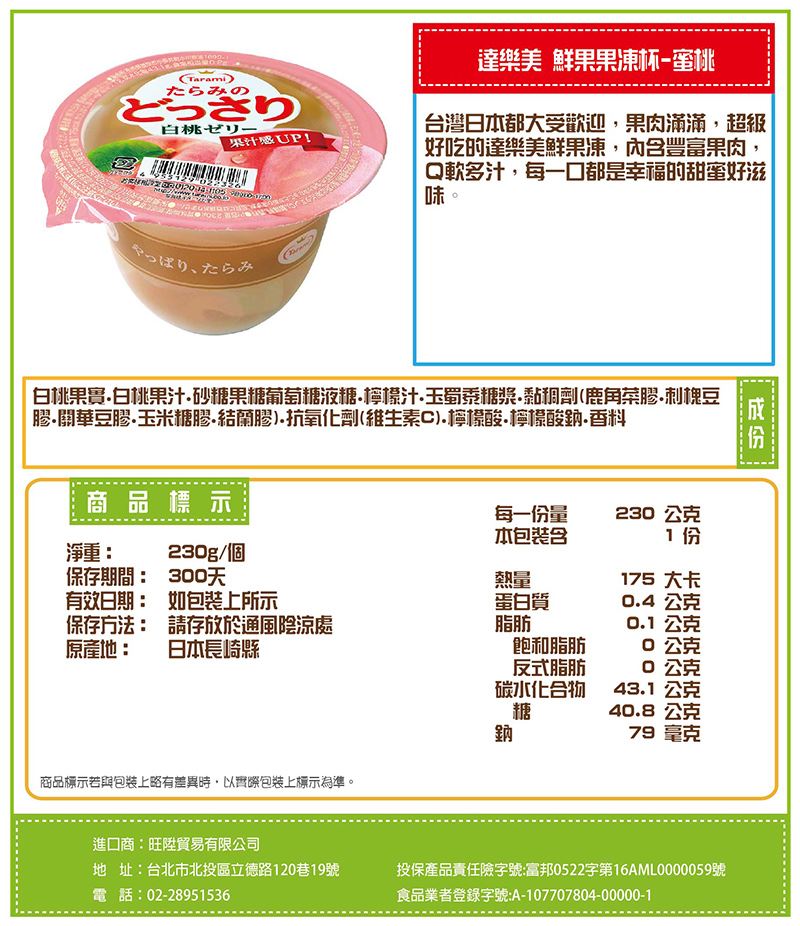 商品名稱:達樂美 鮮果果凍杯-蜜桃(230g)