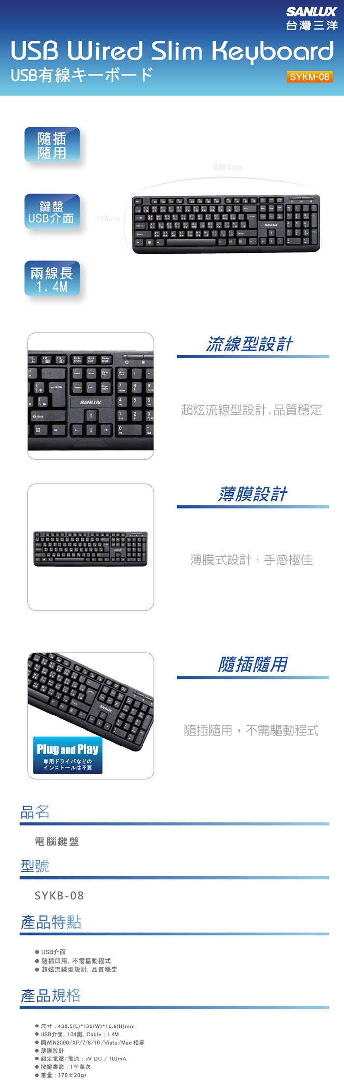 【SANLUX台灣三洋】USB鍵盤(SYKB-08)